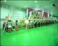 プラスチック表面に金属層を形成させる真空蒸着工程を連続して行う、世界唯一の革新的な設備です。インラインコートの設備も完備し、基材の種類、厚薄を問わず加工可能。大手食品メーカーをはじめ、写真感材メーカーへの採用事例も多く、高い信頼を獲得しています。汎用フィルムへの加工など、現在も開発中の商品が多く、今後の活躍が期待ができます。